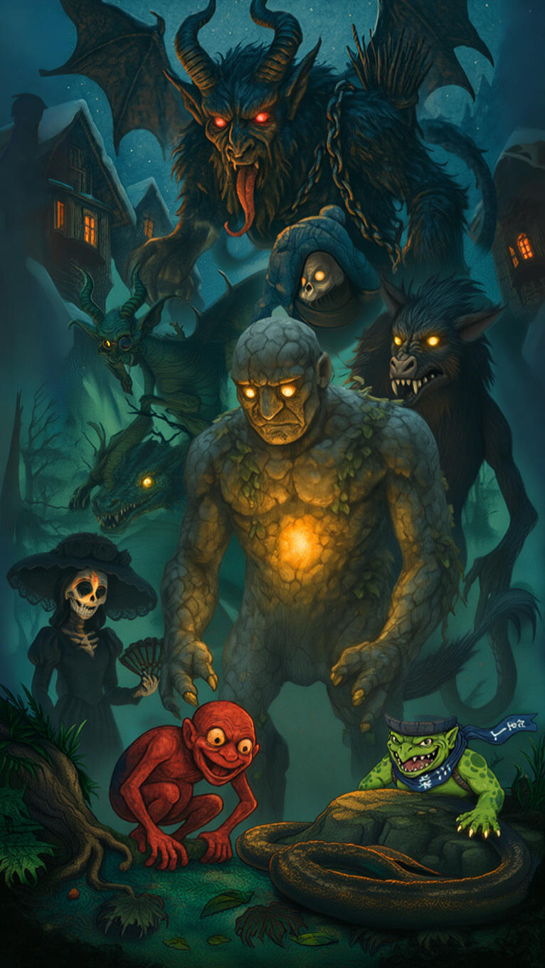 Ten Creatures. Ten Cultures. Ten Twists.From a trickster turtle spirit in Japan to a bone-rattling Krampus in Austria — Monsters with a Twist reimagines folklore creatures for curious readers aged 9–14.